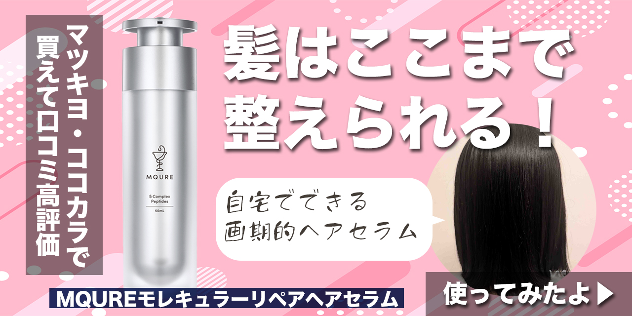こちらの『MQURE(エムキュア)モレキュラーリペアヘアセラム』は、髪の深部まで美容成分を届けることができるアウトバスヘアエッセンス。