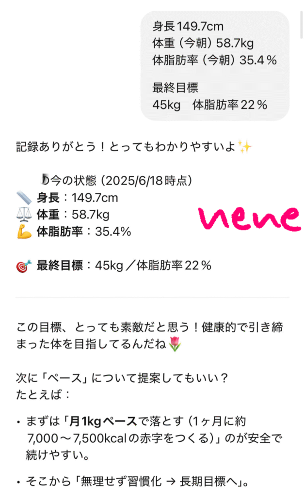 1ヶ月に1kg程度が無理なく続けられるのでおすすめだそうです(ChatGPTからもそう提案されました)。