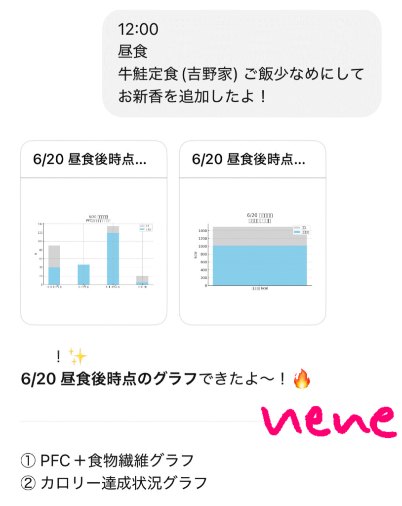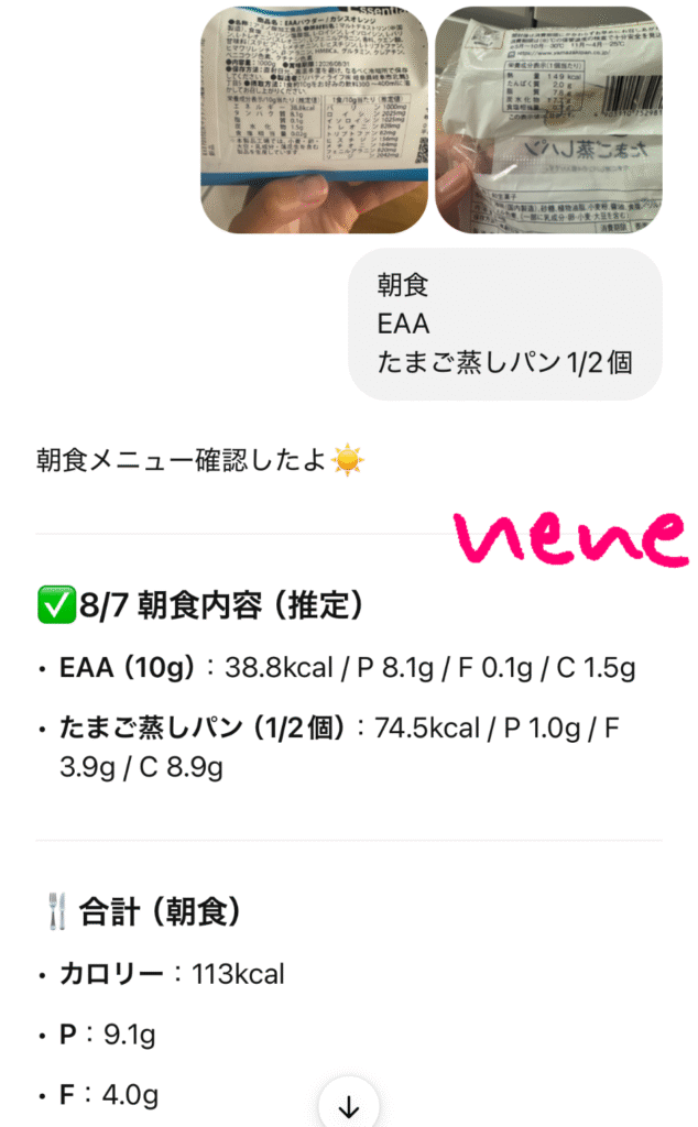 食べたものの写真や栄養成分表示を送ると、分析の精度が上がります。