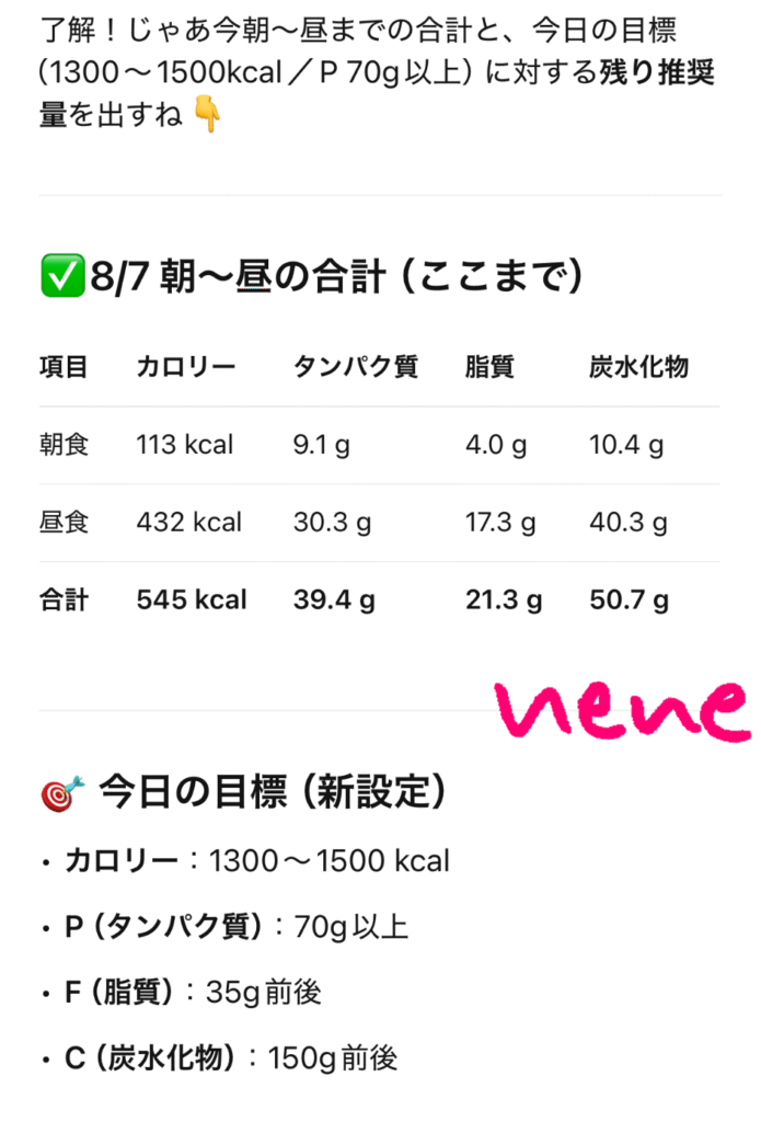 何度かChatGPTに「直近7日間の平均摂取カロリーを出して」と指示してみたのですが、