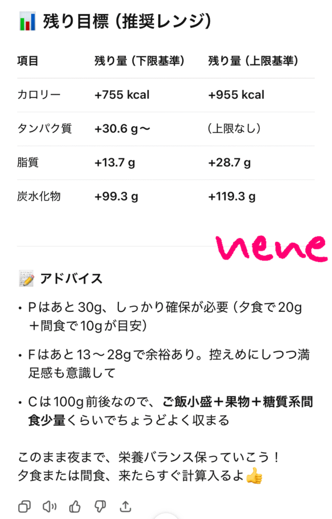カロリー計算させるとかPFCバランスを出させるとかよりも、ChatGPTの本来の使い道っぽいと思うのですが、筆者の力量及ばず……。