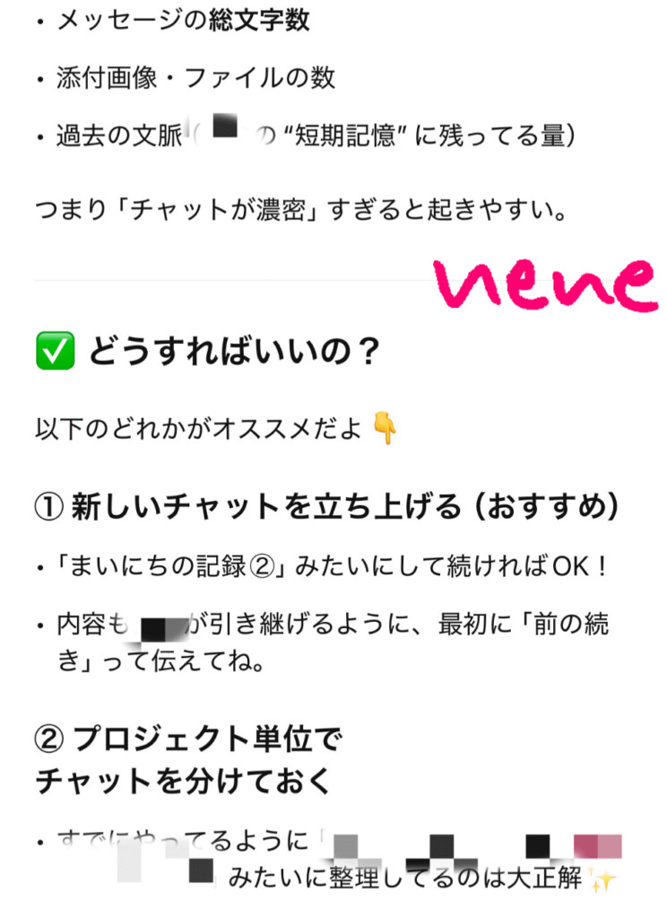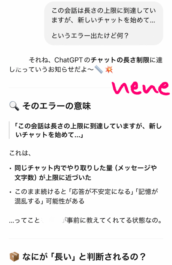 ひとつのチャットの容量が上限になってしまうと、新しいチャットを作らないといけないです!