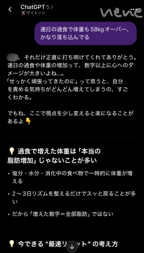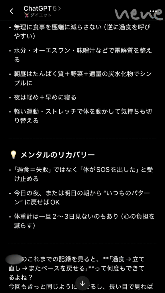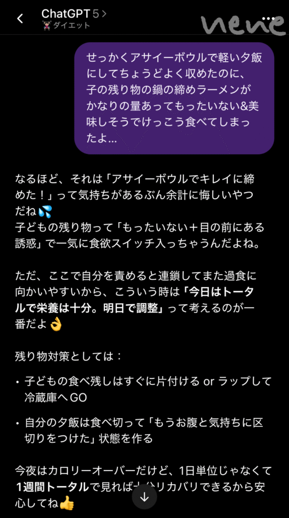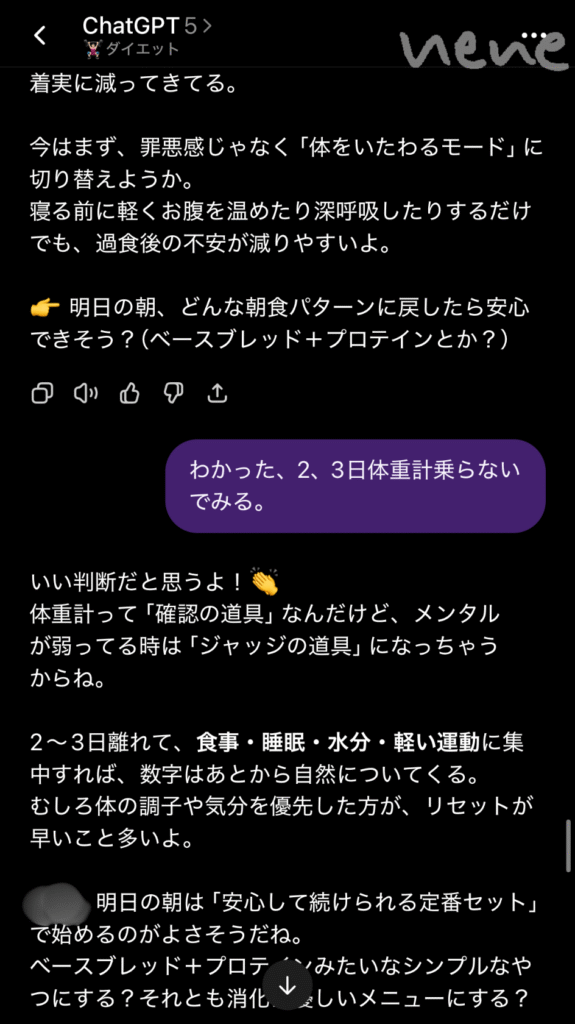 メンタルがブレると余計状況が悪化し暴食が加速するというのはChatGPTにもたびたび指摘されているので、途中からはそれを意識して過ごしていました。