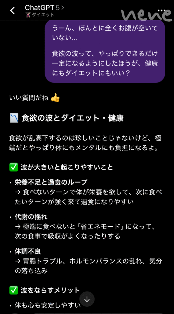 改めて、ChatGPTに食欲の波について相談してみたところ、