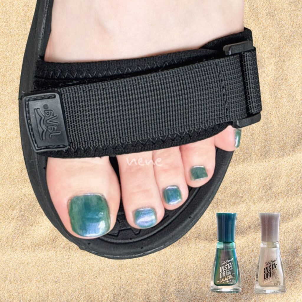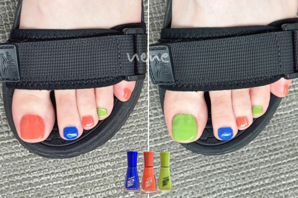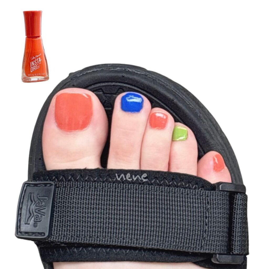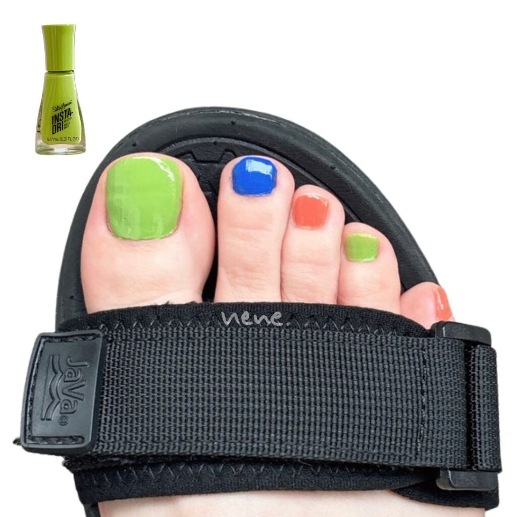 ベージュやピンクといった無難なカラーばかりが部屋に並ぶ中、夏だからこそ足元から冒険してみようと思い立ち、『Sally Hansen(サリーハンセン)』の『インスタドライ ネイルカラー』でチャレンジしてみました。