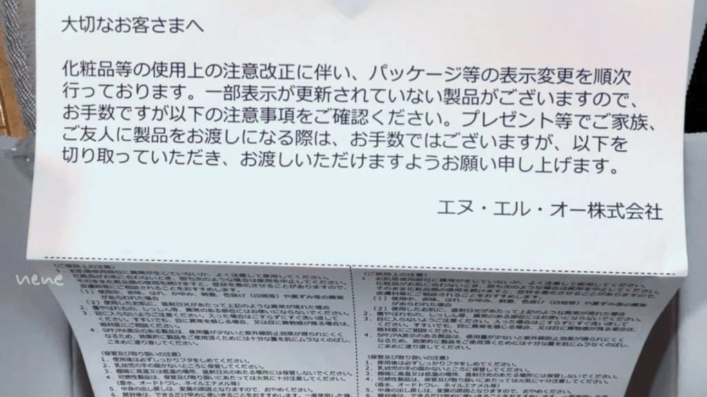 画像にある紙が同封されていたことから「シュウウエムラはその辺りをよくわかっているな……」と強く感じました。