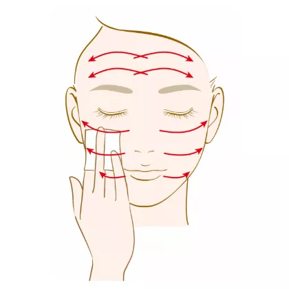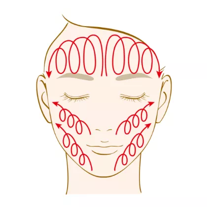 ②らせんを描くように、10秒間マッサージしながら泡を伸び広げます。