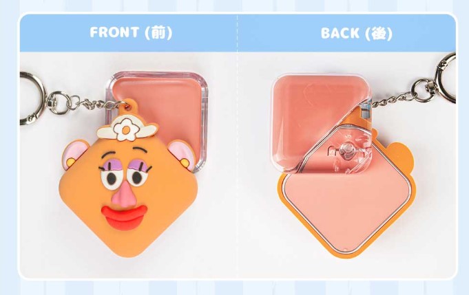 ご覧のように、「01 RANCH PEACH(ランチピーチ)」にはミスター・ポテトヘッド、「02 START BLUSH(スタートブラッシュ)」にはミセス・ポテトヘッドのキーリングが付いてきます。