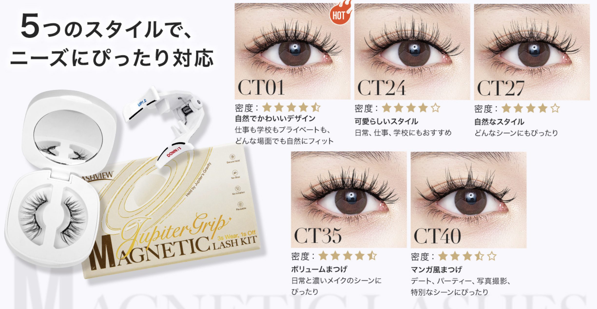 これ、何がすごいって、つけまつげを磁石の力だけで装着させるというところ。つまり、まつげ用の接着剤がいらないのです。